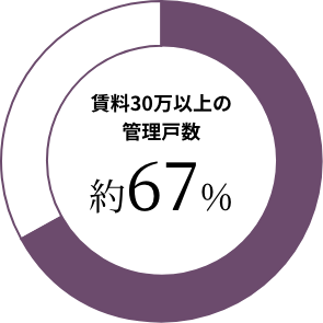 都心3区では、都心物件の管理数に対して約67%が賃料30万以上、